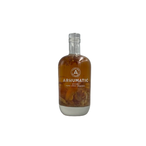 Le deuxième Arhumatic embouteillé pour ce catalogue New Vibrations est produit à partir de rhum blanc Hampden du mark C<>H distillé en 2023, de zestes de citron jaune, de gingembre et de fleurs de jasmin. Si le gingembre est le fil conducteur d’une palette aromatique et gustative aérienne et pleine de tonicité, de son côté, le rhum Hampden se manifeste par des séquences empyreumatiques, herbacées et exotiques sans à aucun moment perturber le bel équilibre de cette recette inédite.